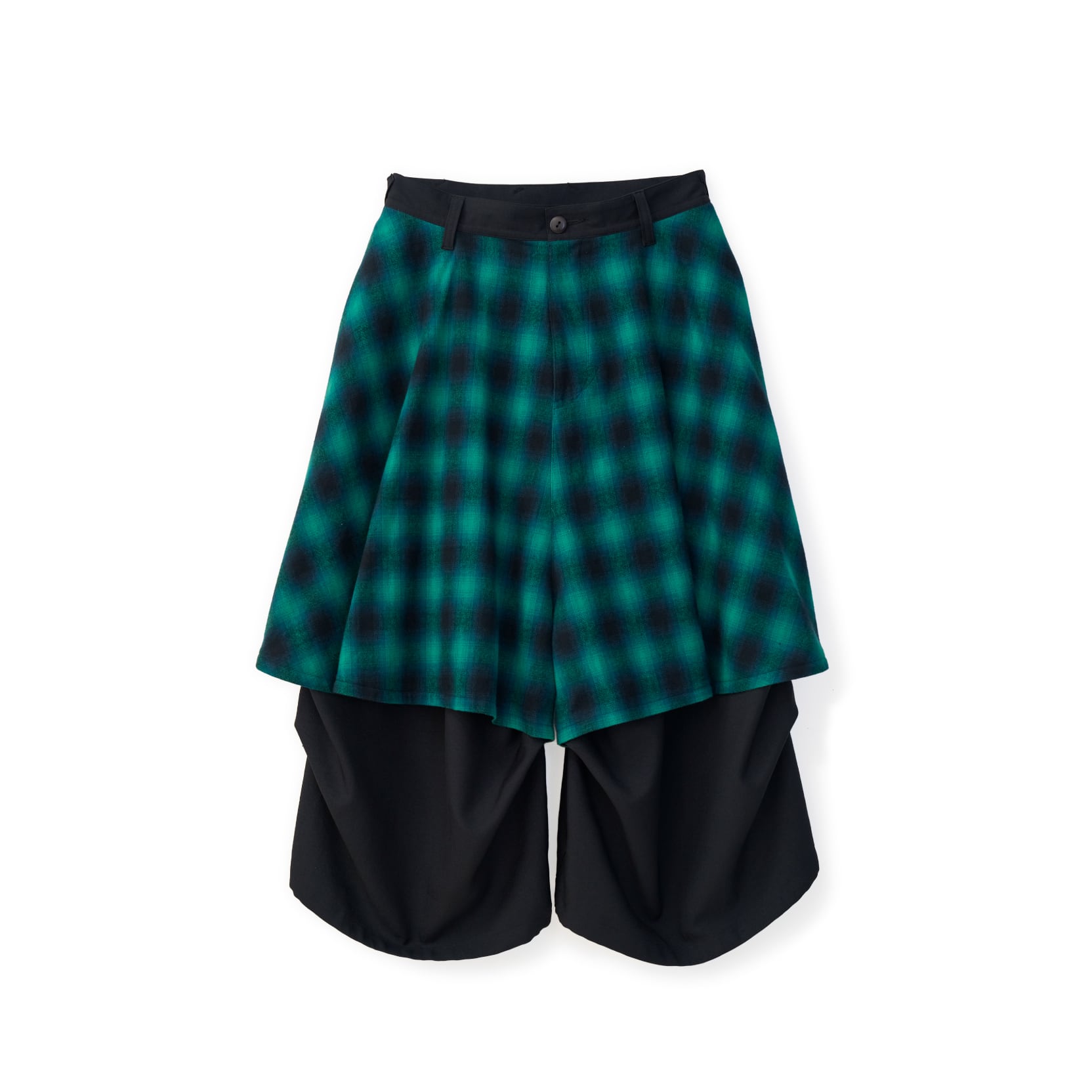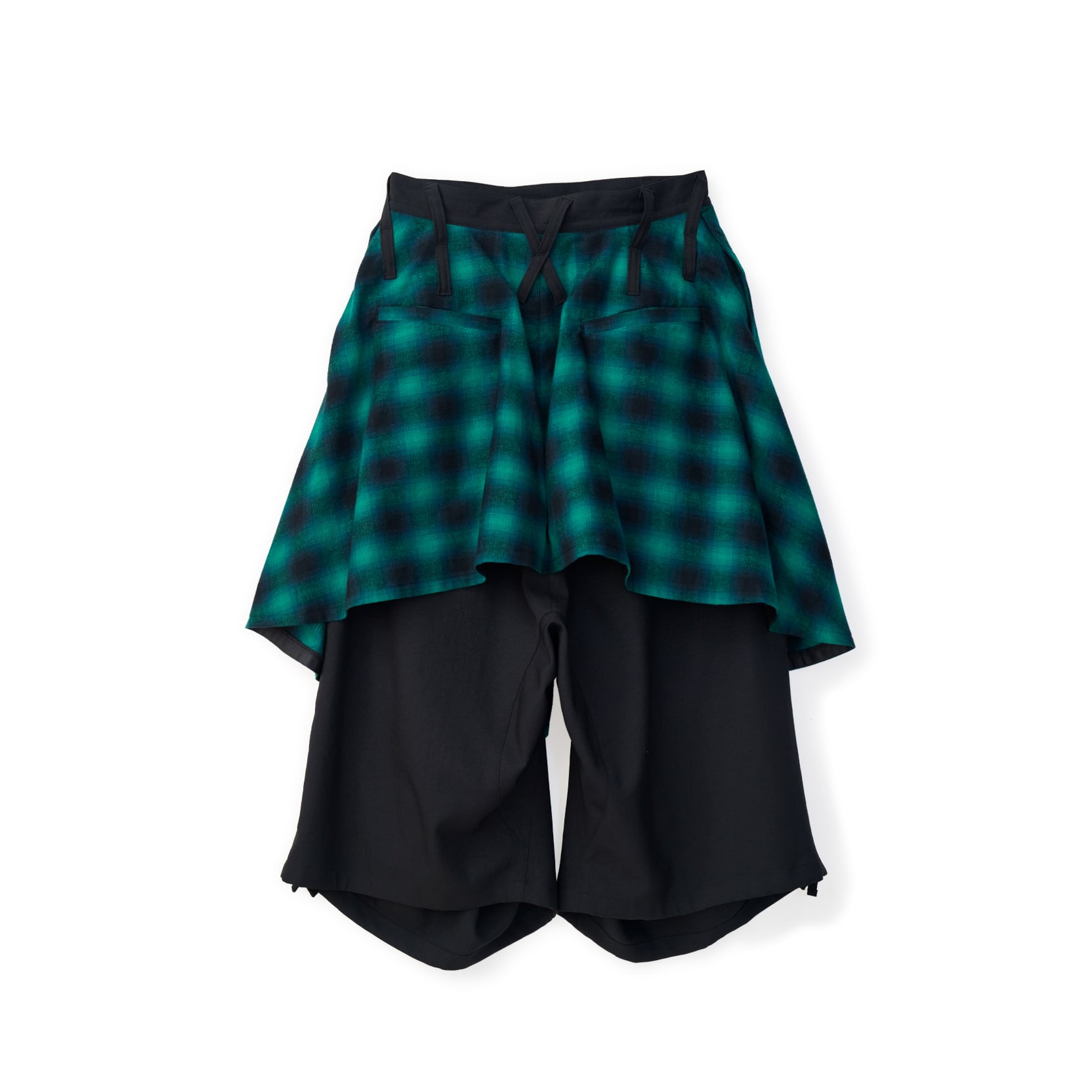 8Q Layered Super Wide Sarouel(Checker Edition) (BLACK×GREEN)