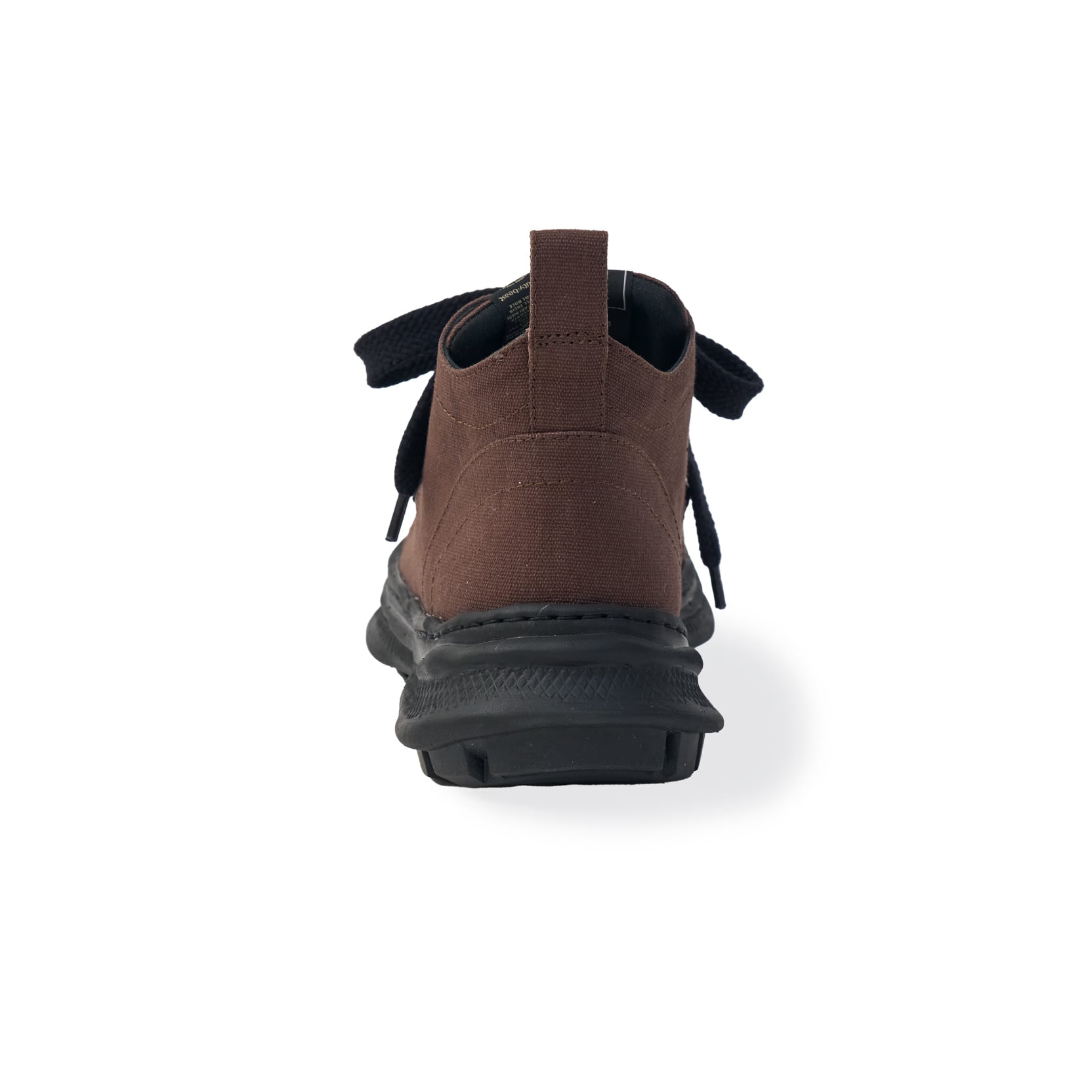 キャンバス素材を使用したオリジナルデザインのミッドスニーカー。先端トゥのレザーを立ち上げる複雑なデザインをMaison MIHARA YASUHIROがリ・デザイン。アウトソールにはクッション性に優れたMMYオリジナルソールを装着。くるぶし、ヒール部分のカッティングも