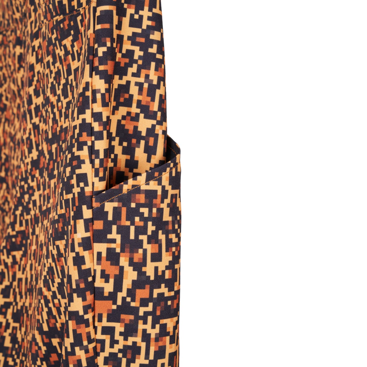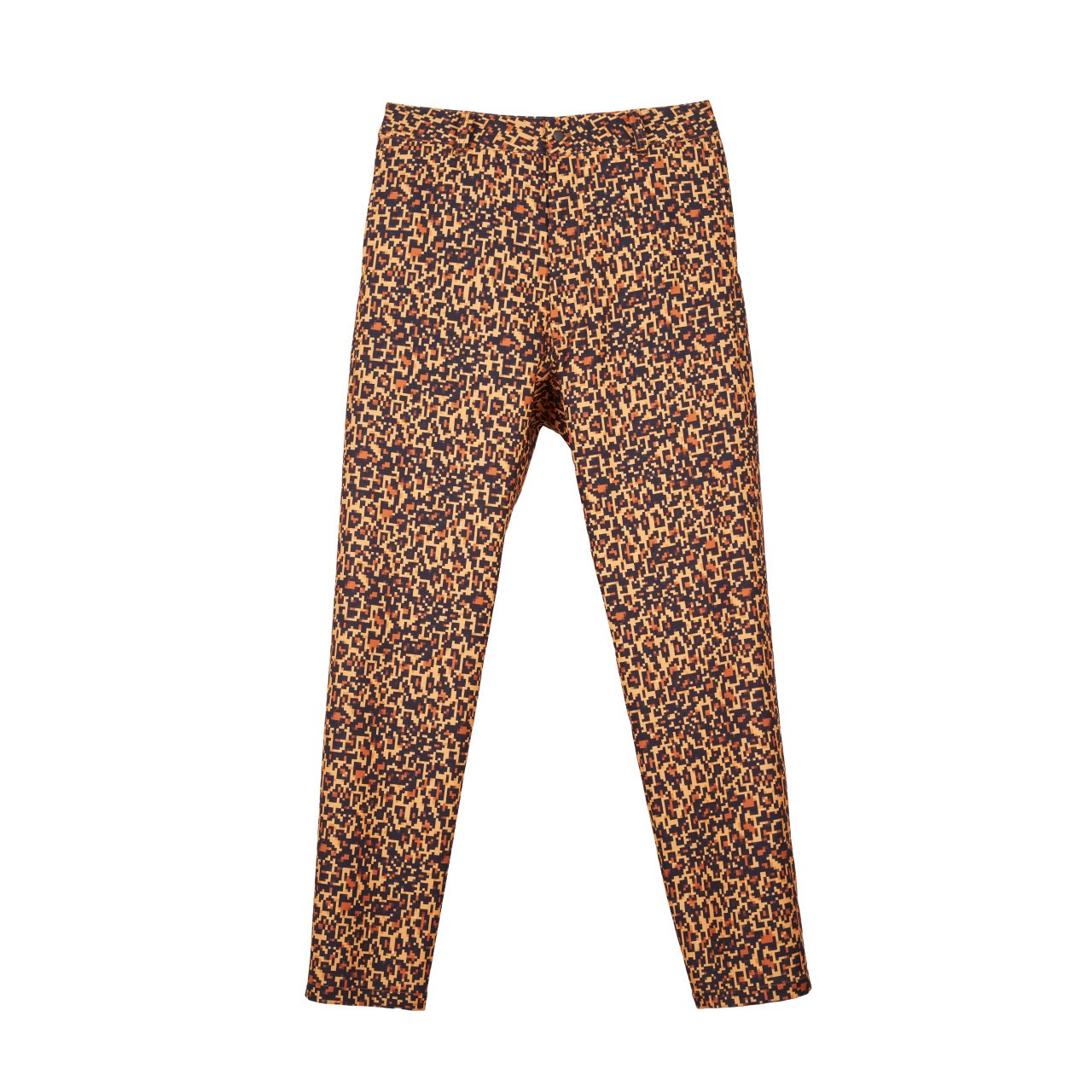 ポリエステル素材を使用したデジタルレオパード柄のテーパードトラウザース。両脇にスラッシュポケット、両足側面にツールポケット、背面に両サイドにスリットポケットを配置。腰回り・腿回りにゆとりのある、裾にボタン付きスリットが入り膝下からテーパードする美麗なシルエット。3サイズ展開。