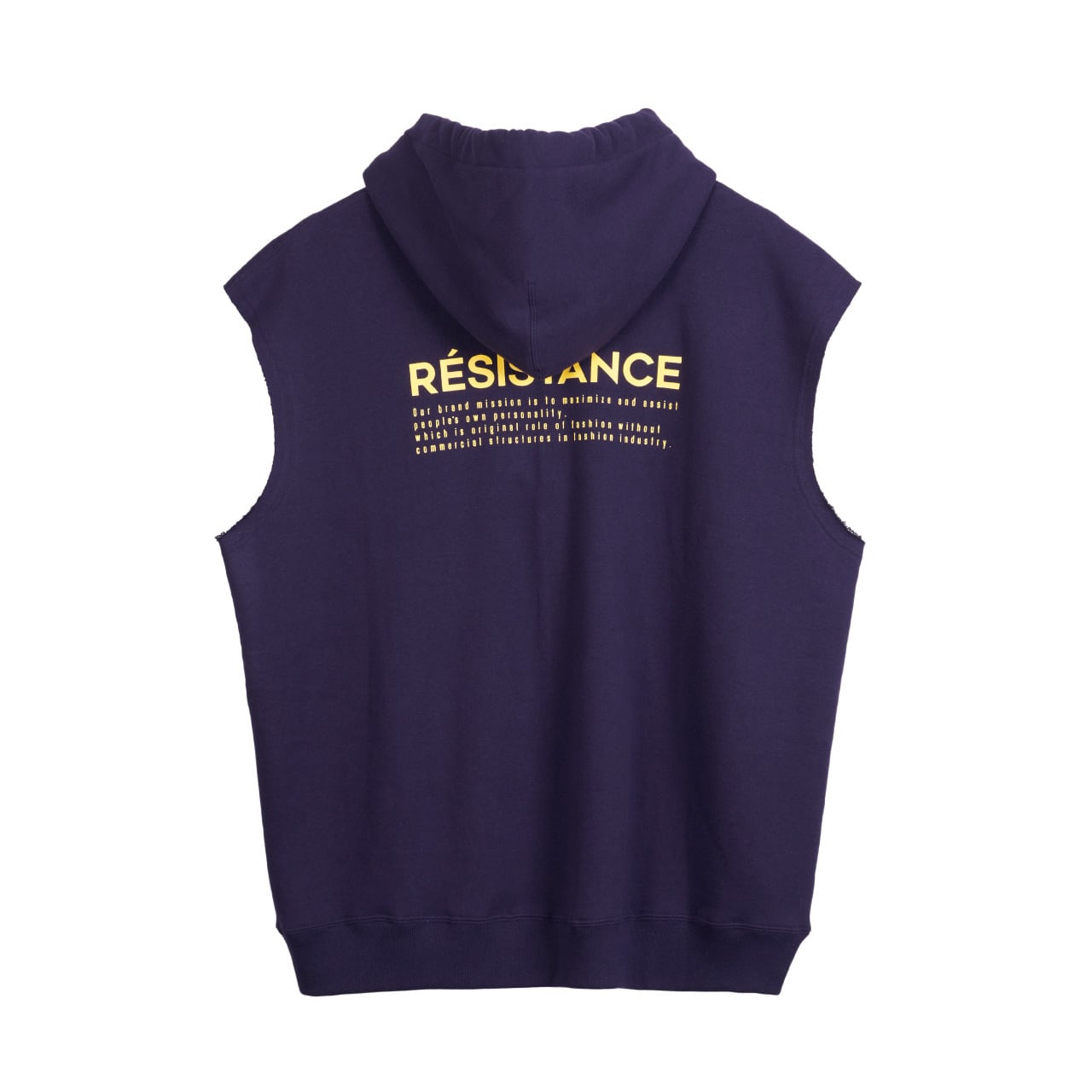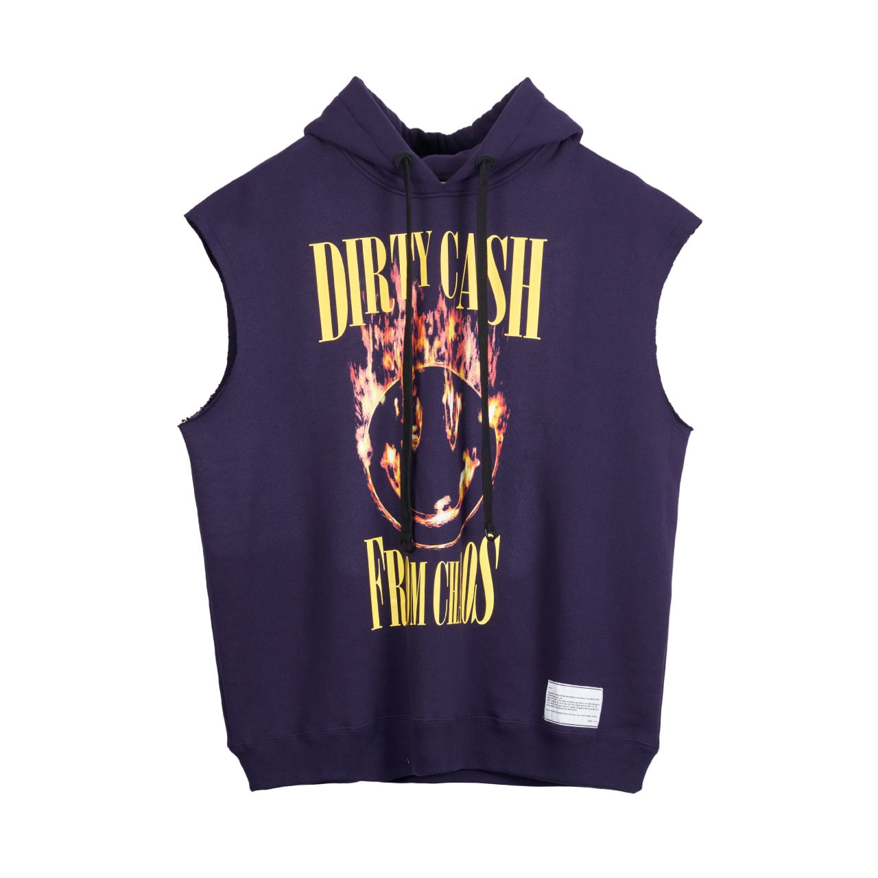 風合いの良いコットン裏毛素材を使用したノースリーブプルオーバーフーデッド。前身頃にフレイム柄スマイルをインクジェットプリント、背面にシーズンコンセプトをラバープリントしたデザイン。フード口にDリング付きスピンドルが付属、シルエット変更が可能。身幅にゆとりのあるシルエット。2色3サイズ展開。