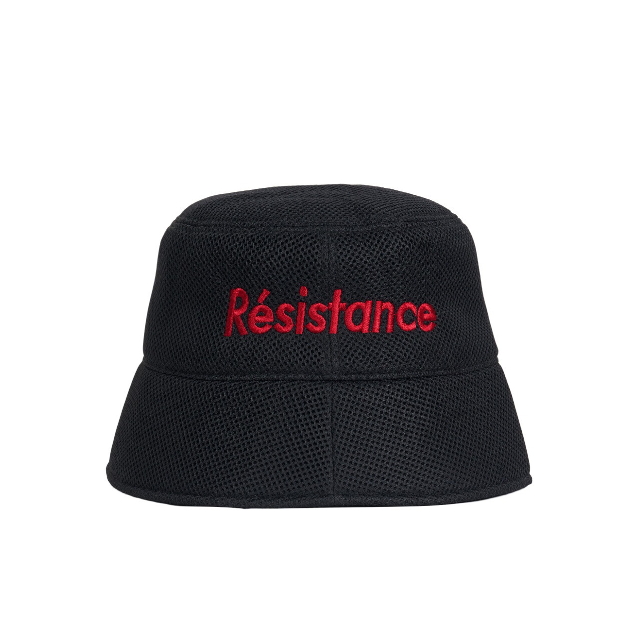 ポリエステル素材を使用したバケットハット。フロントパネルにRESISTANCEのネームをエンブロイダリー。深めのクラウン、短めのブリムをしたシルエット。3色1サイズ展開。