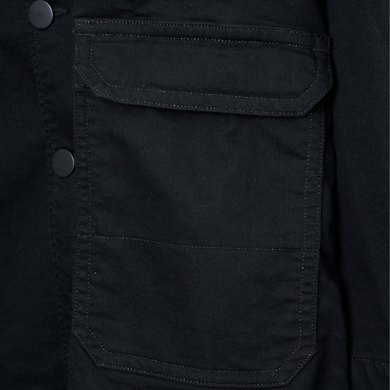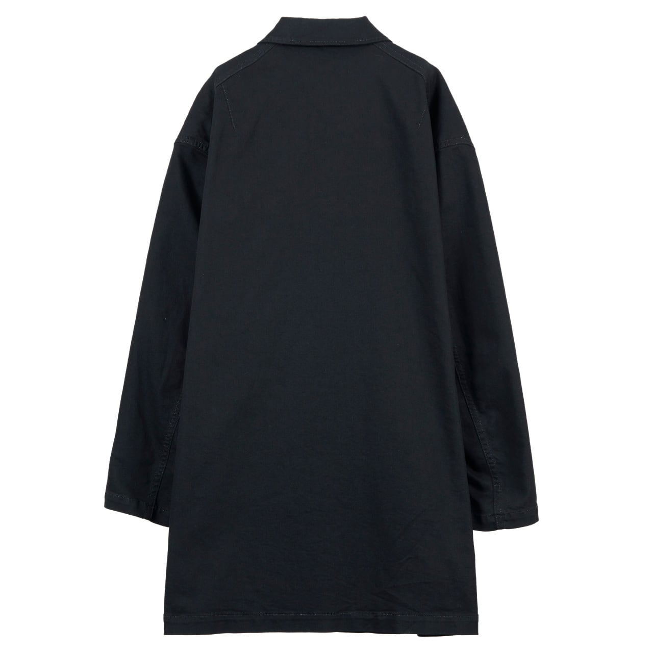 Denim engineer coat made of 100% cotton. All stitchwork is done with a special shiny stitch thread called "Angel King", a design that has been a characteristic of beauty:beast's denim since the 90s. Pockets with flaps on both hips. The silhouette is longer in length and more generous in width.