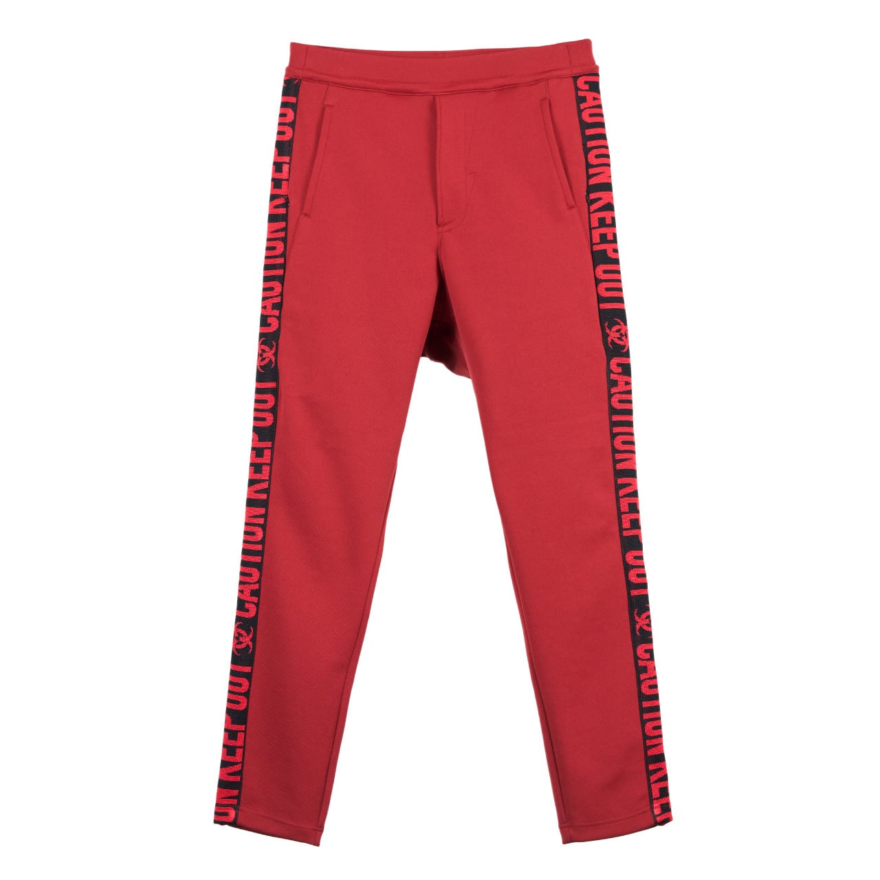 ポリエステル素材を使用したサルエルスニキートラックパンツ。従来のデザインをパターンから再構築を行い、ヒップ、レッグなどの各所を大幅にシルエットチェンジ。身頃の前後両脇にスラッシュポケット、右腿にコンシールファスナーポケットを配置。両足にジャガードで表現したCAUTION KEEP OUTのテープを配したデザイン。ヒップにゆとりのあるスキニーシルエット。