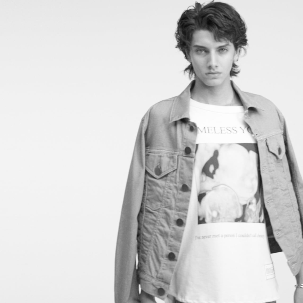 コットン/ポリエステルの混紡ストレッチデニムを使用したビッグボタントラッカージャケット。両胸にフラップポケット、左ポケット脇に赤ピスネームを挟み込み、前立て・袖口・ポケットには90年代より採用するビッグボタン、両腰にスラッシュポケットを配置したデザイン。身幅はややタイトなシルエット。