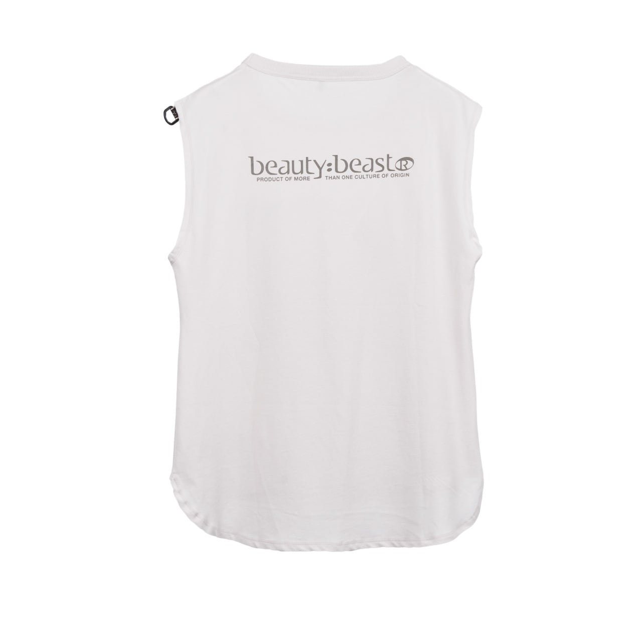 滑らかで肌あたりの良いオリジナルで作成したコットン天竺素材を使用したスリーブレスTシャツ。前身頃に2024年版“DARK KNIGHT”グラフィックをインクジェットプリント、背面にクラシックロゴをラバープリントで表現したデザイン。身頃の左下にスクウェアネームを叩きつけ、左肩に織りネームとD環を挟み込んだオリジナルディテール。身幅にゆとりのあるシルエット。