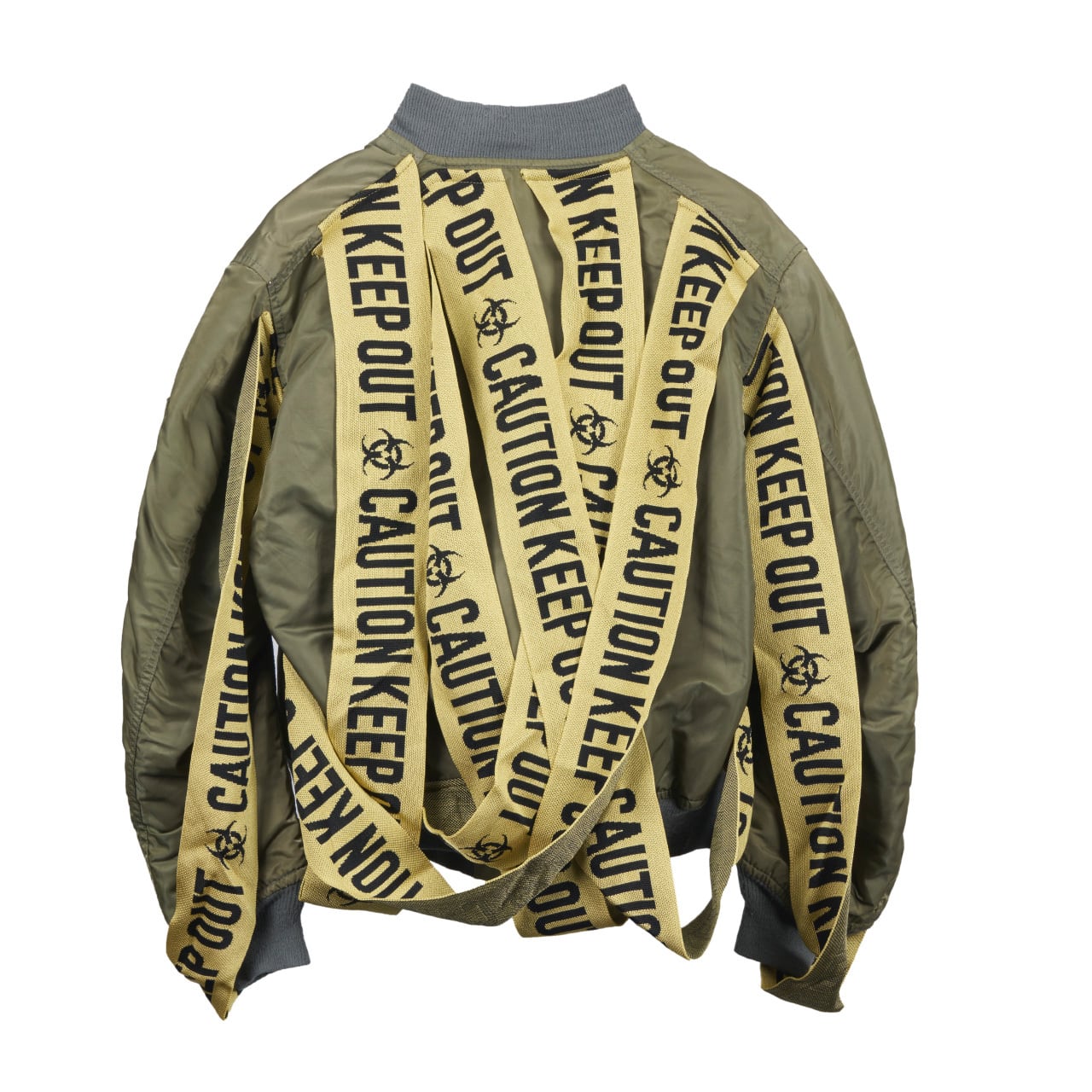 Original yellow and black color scheme with CAUTION KEEP OUT and BIOHAZARD jacquard tape on the back and arms.